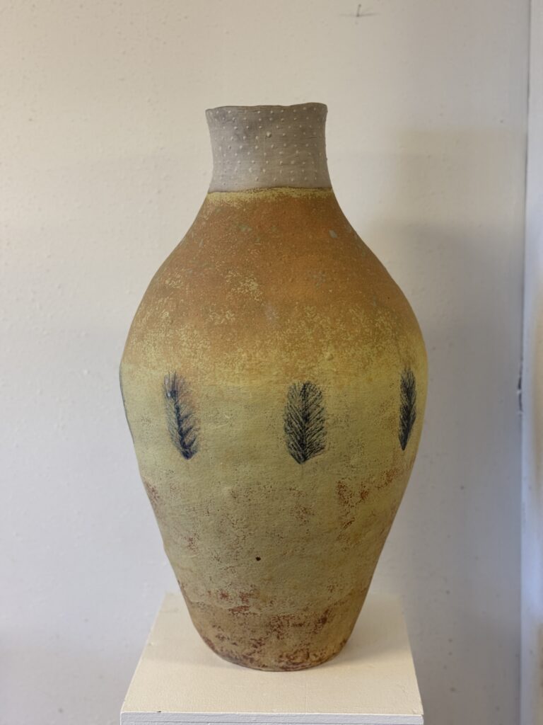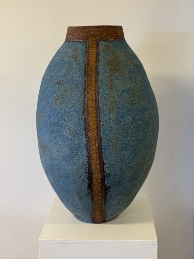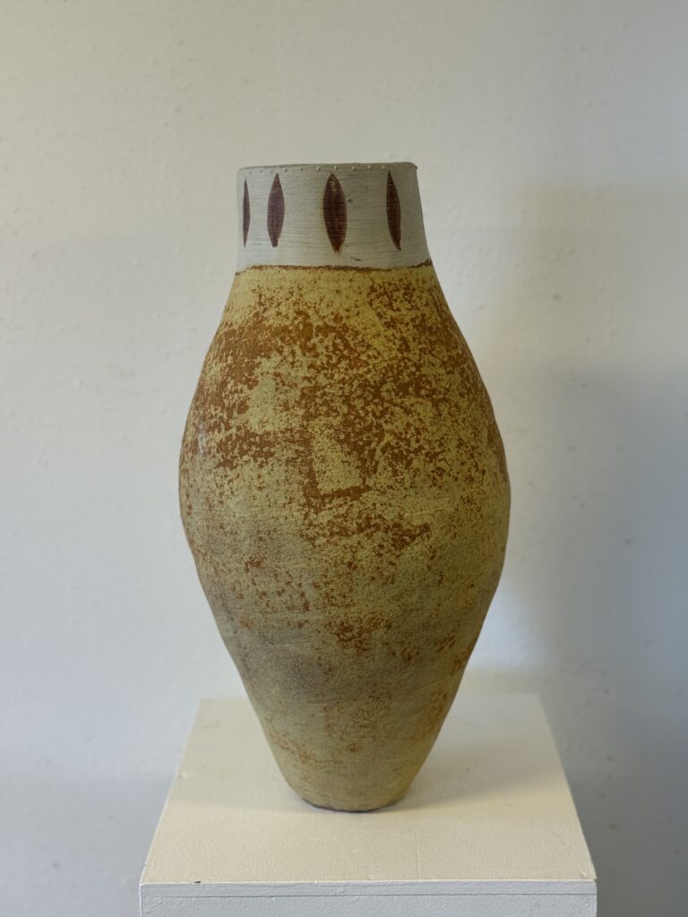 En känsla av att tiden varit med är en upplevelse som jag vill förmedla. Krukorna har kraftfulla glasyrer med sparsmakad dekor. Jag låter lerans karaktär och teknik synas genom glasyren som förstärker det icke perfekta uttrycket. Krukorna samspelar med varandra men där varje kruka har sin egen karaktär.